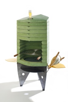 Der Grill besteht aus einzelnen, eingefärbten, feuerfesten Betonringen, die auf einem Fuss aus geschweissten Metallscheiben aufgebaut werden. Die Zerlegung in Einzelteile ermöglicht einen einfachen Transport. Der Feuerraum ist mit Speckstein ausgelegt, die einsetzbaren Seitenflügel und der gelaserte Grillrost komplettieren das unerwartete äussere von : Robin Hood. Die Betonringe konnten mit freundlicher Unterstützung der Arnet & Co. AG in ihrem Werk in Landikon von mir hergestellt werden. Es gibt eine grüne und eine beige Version, beide stehen zum Verkauf. Anfragen an atelier@semadenihotz.ch